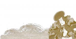 今年は豊原国周画「五代目尾上菊五郎の天竺徳兵衛」(明治十六年、江戸市村座)です。「ガマの油」は薬として用いられ、カエルは縁起の良い生き物ともされます。天竺徳兵衛とともに、不思議な力を持つ蝦蟇が独特の存在感を放ちます。