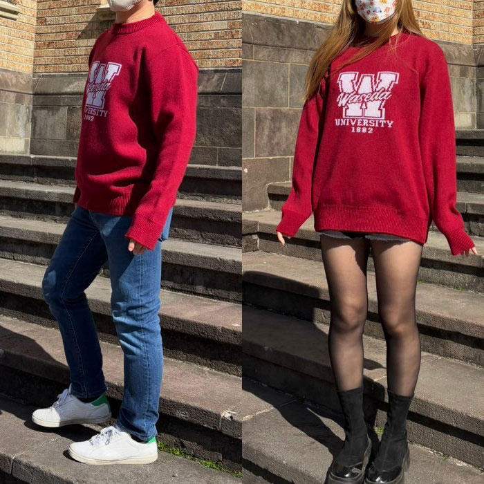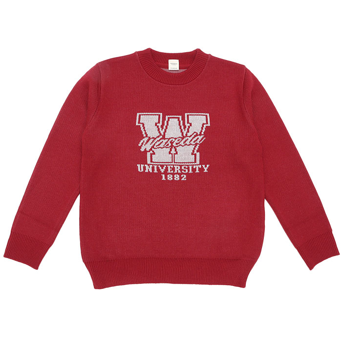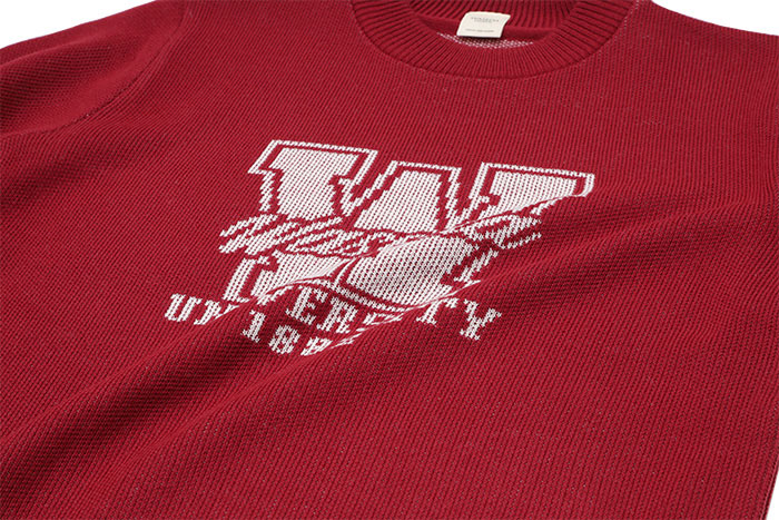 ローゲージ(ややざっくりとした編み)のカレッジデザインニット。