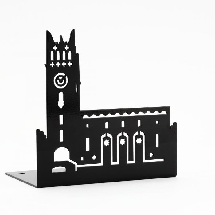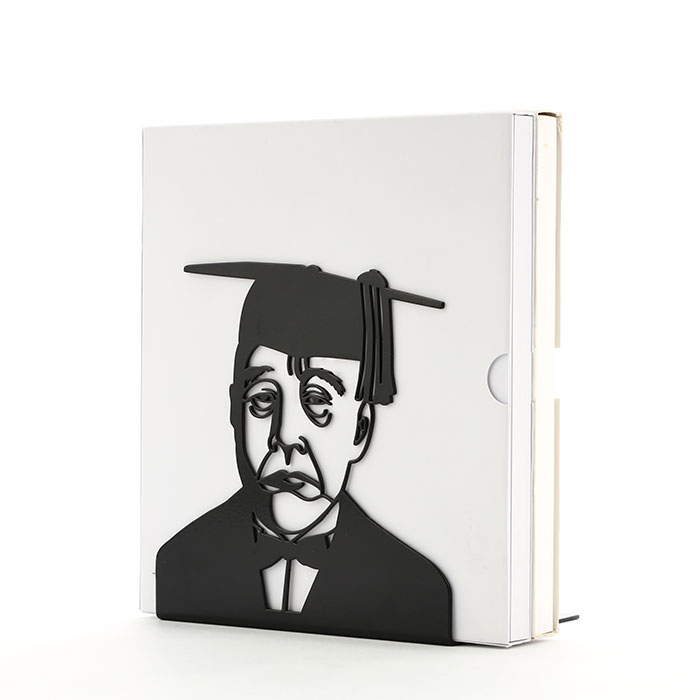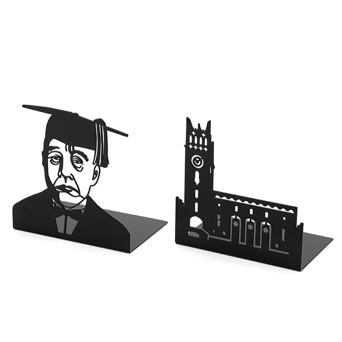 早稲田大学の象徴である創設者大隈重信と大隈記念講堂をデザインした、スチール製のブックエンドです。