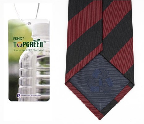ペットボトルをリサイクルして作られる再生ポリエステル「TOPGREEN®」の糸を使い、京都西陣で織られたMADE IN JAPANのecoネクタイ。