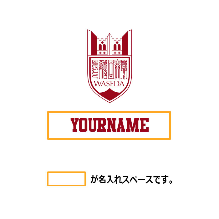 早稲田エンブレムの下にお好きな名前をお入れする、公式感の強いデザインです。