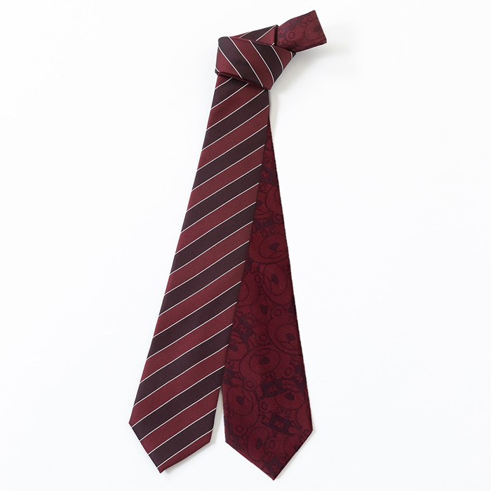 両端が大剣になっているユニークな早稲田オリジナルネクタイ。両方の大剣に2種類のデザインが織り込まれており、1本で2通りのデザインをお楽しみいただけます。